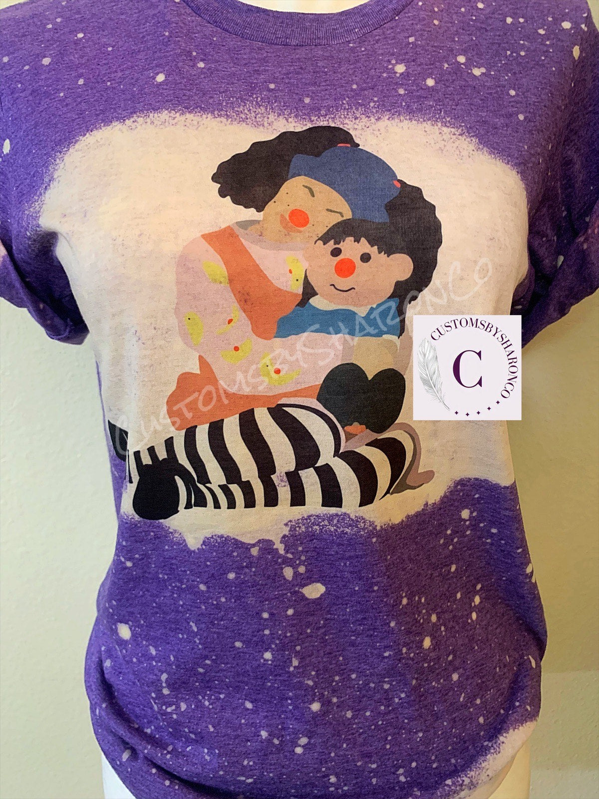 Shirts are unisex sizing & bleach spots differ due to customization.